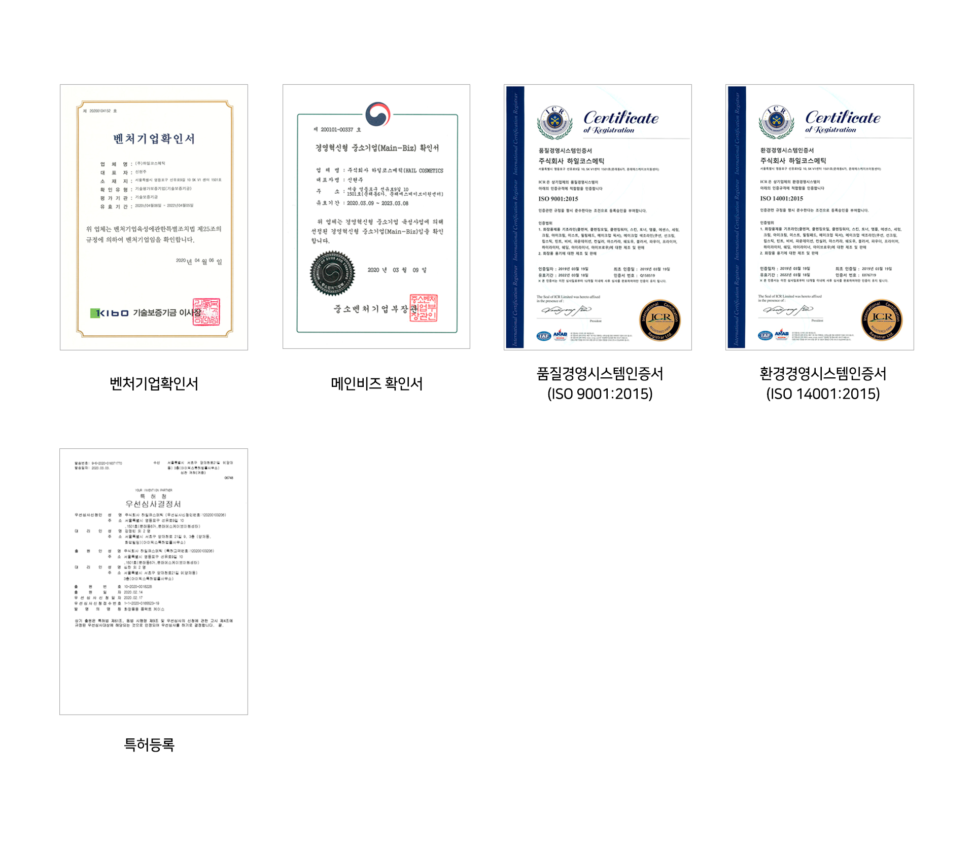 인정받는 하일코스메틱의 수상경력